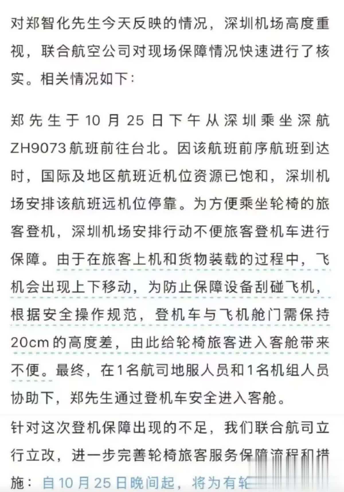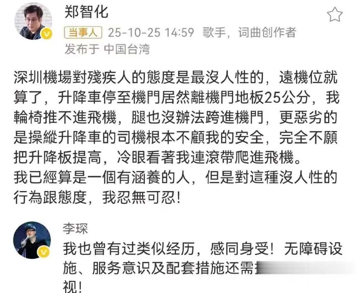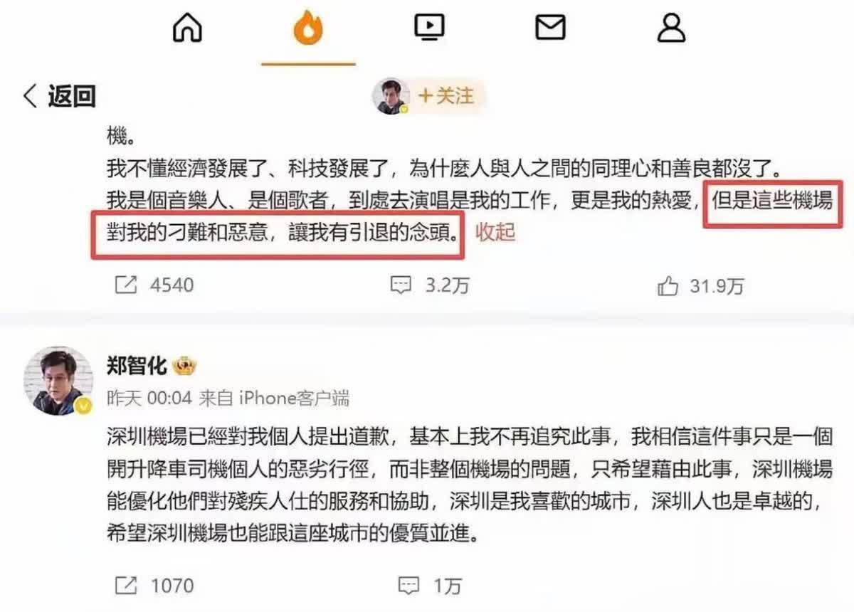 郑智化满意了,深圳机场道歉了,又提升了服务,勉强算得上是皆大欢喜。
